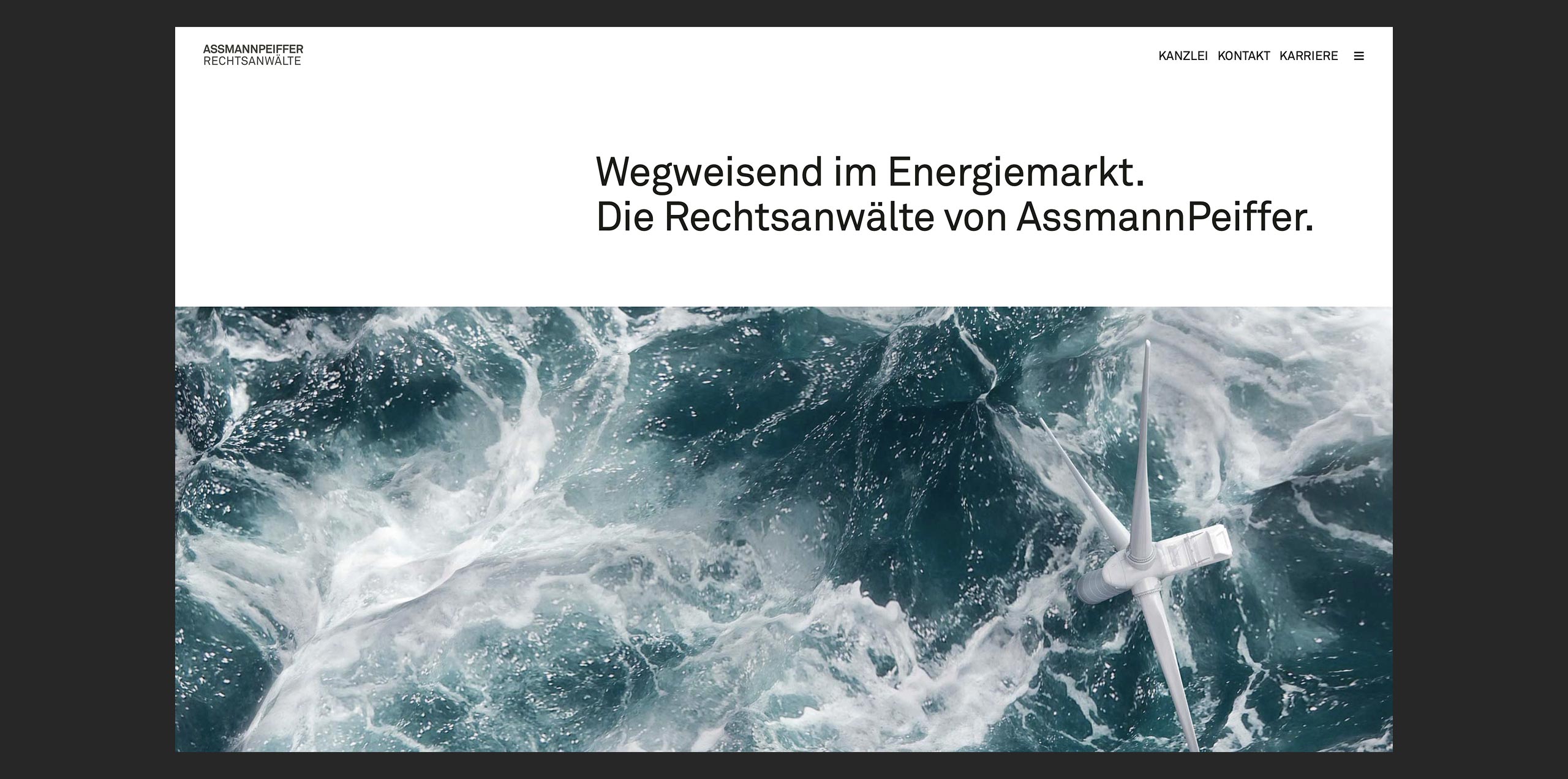 Die Münchner Energie-Boutique beauftragt uns mit dem Relaunch ihres Webauftritts – inklusive einem gestalterischen Fresh-up ihrer bestehenden Kanzlei-Marke. Im Mittelpunkt unserer Arbeit steht die Entwicklung eines modernen, visuell eigenständigen Designs. Dazu zählen ein präzise abgestimmtes Typografiekonzept sowie eine Bildsprache, die das Thema Energie emotional auflädt und gleichzeitig die Menschen hinter dem Unternehmen sichtbar macht. Die Mitarbeitenden rücken dabei bewusst in den Vordergrund und verleihen der Kanzlei-Marke Persönlichkeit und Nähe.